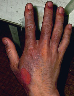 みさぎ君の手は、もうそんなには痛まないそうで、それなりに普通に使用しております。 ていうか回復速いのと痛みに鈍いのと相乗効果でね(笑) でも、あちこち水ぶくれまくりだし、死んだ皮膚はゾンビのようだし、こんな有り様・・・・ うえぇぇ こあいよぅ(T-T) |