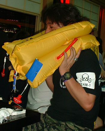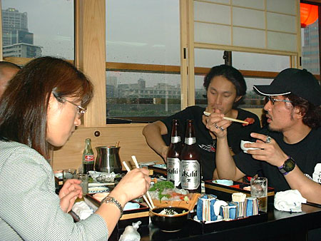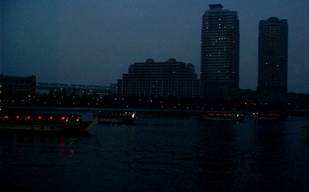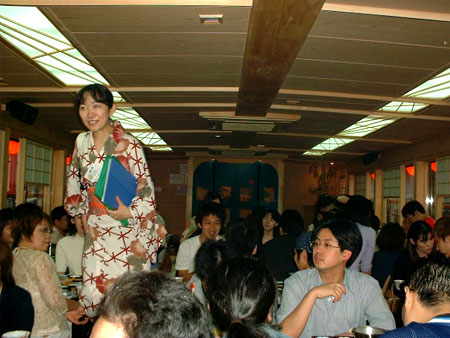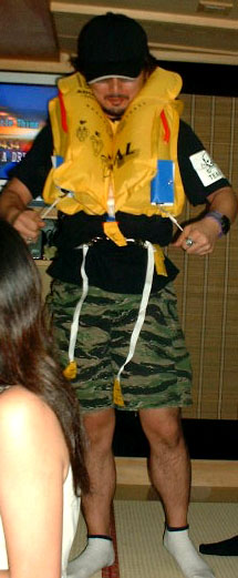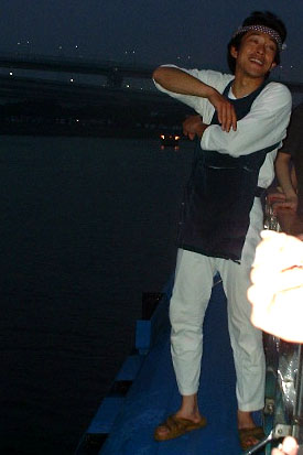 | スゴイよ、スゴイよ? 今日は何とLiBRiのお誘いで屋形船で船遊びしましたよ! 集合場所は浜松町。竹芝埠頭の端から隅田川を上って、支流に入ってお台場へ、んでまた戻ってくるというコースです。 最初企画聞いたときは、LiBRi主催でいつもの馴染みのメンバー20人くらいで行くんだろうかな、と思ってたんだけど、当日聞いてみたら全部で80人( ̄□ ̄;)とかゆって・・ なんやそれ?(^_^;) なんでも、日本最大の90人だか乗りの屋形船があって、それに乗りたくて無理やり人数集めたらしい。 もー、LiBRiメンバーの5〜6人以外はぜんっぜんどこから寄って来たの判らんメンバーばかし。 しかし、どう集めてもなんか胡散臭い(笑) アロハ率と下駄率が無駄に高いし・・・ そんなこんなで。 船は凝ったつくりが自慢らしく、入り口はこんなとかこんなで玄関風。中の広さがこんくらい(^_^;) いやー、デカいっしょ? 普通に想像する屋形船とは違うです(笑) 「外海じゃないしそんなに揺れないよ」とか言われてたのに、思いの外ゆ〜らゆ〜らしてて、比較的顔面が蒼いアタシ( ̄- ̄;)(弱っ) 隣の卓には、そんな事は露とも気にせず、船が出港したとたんにすげー勢いで食う連中(笑) 他の卓の天ぷら奪うし、ビールも最後の一本まで飲み尽くすし・・ しかもそのうち一人(ミリヲタ)が、ネタで、前にJALからちょっぱってきたライフジャケットなんて持ち込んでて、宴会芸で膨らます!そして脱げない!(爆) おもしれー!(笑) あ、この船は屋根にも登れていいカンジらしいんですが、それだと屋根が屋根っぽくないのでちょっと屋形船じゃないな-とかは思いつつも。 夜景とか。 あ、店員さんはこんな姿です。チャキチャキっぽく(笑) カラオケ装備なものの、メンバー全員が知り合いじゃないからか、誰も歌い出さず帰途へつく(^_^;) 確かに、一体何がどうなって集まってるんだか判らん、素性の知れない面子ばっかだと歌いにくいヨなぁ(笑) でも、最後近くなってそんな事気にならんくらい酔いが回ったのか、LiBRiマスターが歌う! 曲は「破裏拳ポリマー」!!( ̄▽ ̄;) しかもその後に続いた曲も、「哀戦士」、「キューティー・ハニー」、「テッカマン」。。。 なぁんだ、素性知れないと思ってたけど、結局みんなヲタクの集まりってことでいいんだ(゚∀゚)(爆) ま、とゆー訳で。 なかなか貴重な体験をさして頂いたんですが、みさぎが屋形船初体験じゃないって事の方がアタシ的にはあぃ〜ん(;´Д`)ってカンジでした。まる。 あ、あとオマケ。本日一番おキレイであった、プロの芸者さんのうららさん! 新ユカタだ流行りの柄だ着易い帯だと、テキトーな浴衣が流行してマトモな着方も知らんみっともないのがウロウロする昨今ですが、さすがプロ! こんなにピシッと素晴らしく着こなしてらっしゃる方は久しぶりに見ましたわ(T^T)9 ん〜。日本の伝統は美しくってヨ(^-^) |