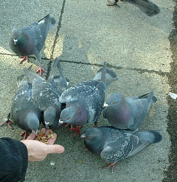 | お久しぶりです( '-')ノ(ってヲイ ん〜、いやホント、先週1週間ってコレと言ってなーんもなくってねぇ(´-`;) 普段なら、何もなくっても、その間に色々考えたりとか思いついたりとかで、「あ、コレ日記に書こう」ってネタが出てくるもんなんですが。。 まぁそういう事もある、くらいなカンジで(爆) でもねー、ようやくといいますか、前から行こう行こうと言ってた浮間舟渡にあるでっかい公園に、鴨見に行ってきましたよ〜(笑) 都内だと言うのにやたら広大な公園でねぇ。 まぁ公園ッつーか池がメインなんですが。 最初にみさぎが、平日の朝通りがかった時は、池の近くに行くだけで、鴨達が「おうおう、なんか餌くれや」(笑)と池からヘコヘコ上がってきたらしいんですが、さすがに天気の良い休日の午後に行くと、すでに公園は家族連れと老人で一杯で、餌も撒きまくりらしく、鴨さんあんまり食いつき良くありません(笑) 見るからに腹いっぱいムード。 でもその代わりと言うか、鳩も一杯いて、コイツらがまた良く食いましてねー。 人間にも馴れてるしね。 だからこんな事も出来ちゃう。 @手ずから鳩 A手乗り鳩 B手づかみ鳩(爆) (このあと、この鳩君は「んっげービビったっっ!!」とばかりにかなり遠くの枝にまで避難してしまった(笑) でも餌を撒くとまた来る。鳩だしな。) 前に、浅草の時にも書いたけど、鳩ってこっちが立ったまま手に餌乗せてると、ホバリングして来るから面白い(笑) ところで、鳩が飛ぶ時のあの羽音と同時に起こる「きゅきゅきゅきゅ」みたいな音(なんて表現すれば良いんだか・・)、あれって羽の音?それとも声ですかね? 飛ぶ時に思わず声が出ちゃってる?(笑) 公園は、子供と散歩犬が抱負にいるので、見てるだけで楽しいです。 しかしまー、この時期になるとそろそろ風が強くて(p_;) 風はダメだよー( ̄- ̄;) 干からびるんだよー。。 |